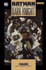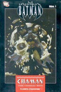 Shaman – Book One. 11 de marzo del Año 1: después de haber visto el murciélago estrellarse contra la ventana, Bruce, ensangrentado y malherido, se echa desplomado en su silla, llamando al mayordomo con su campanilla. Alfred vendrá a ayudarlo, salvándole la vida. Bruce pasará las próximas semanas recuperándose, aunque tengan en cuenta que “Legends of the Dark Knight #1” y “Shadow of the Bat #29” ignoran por completo el tiempo de recuperación de Bruce, lo cual es un error de continuidad total. Durante la parte inicial de este período de recuperación, Bruce y Alfred diseñan y confeccionan un traje de Batman. La capa está hecha de material ignífugo y puede funcionar como un planeador. También crean el cinturón de herramientas, que estará equipado con varios pertrechos para combatir el crimen. Se toman algunas semanas de especial cuidado en la finalización del traje. Sólo después de este período de intensa concentración, Bruce estará listo para volver a intentar luchar contra el crimen. La primera noche como Batman es definitivamente la noche del 5 al 6 de abril del Año 1. La imagen de Mazzucchelli del “Año Uno” de Batman en los tejados transcurre durante las primeras horas del 6 de abril, camino a la clínica de Leslie Thompkins. Sin embargo, debemos tener en cuenta que el paso del tiempo en “LOTDK #1” es un tanto extraño, lo que hace que parezca que Bruce se convierte en Batman el día después de la fallida aventura del 11 de marzo de “Year One” en el “East End”; no solo eso no es posible, sino que otras publicaciones muestran que no se convierte en Batman hasta varias semanas después de aquel suceso. “Batman: Shadow of the Bat #29” comete exactamente el mismo error, diciéndonos que Batman está vestido y listo para la acción un día después de que el murciélago choca contra la ventana. “Batman Chronicles #19” también comete el mismo error, afirmando que el momento “me convertiré en un murciélago” ocurre apenas tres días después de la fallida aventura del 11 de marzo. Sepan con certeza que se necesitan semanas para sanar, poner en marcha la Baticueva y confeccionar un traje de murciélago. 5 de abril. Bruce hace ejercicio y le dice a Alfred que programe una reunión con la inescrupulosa antropóloga de la Universidad de Gotham, Dra. Madison Spurlock, que está estudiando la cultura de los nativos americanos de Alaska, con dineros de la Fundación Wayne. Más tarde, Bruce se pondrá el traje que infundirá terror en los corazones de los malhechores, convirtiéndose en el superhéroe justiciero conocido como Batman. Equipado por primera vez, Batman se prepara para su primera patrulla por la ciudad. Un flashback de “Detective Comics #0” también detalla los preparativos de Batman antes de salir, en esta nerviosa primera noche. Esta preparación incluye mostrarle batarangs y su cinturón de herramientas a Alfred. Batman le encarga a Alfred que haga trajes de murciélago alternativos para diferentes misiones. No olviden que, como se mencionó anteriormente, “LOTDK #1” tiene una línea de tiempo original, que contiene la fallida salida de Bruce al “East End” del 11 de marzo, como ocurriendo la noche anterior a su debut del 5 de abril. Pero en realidad ha pasado más de un mes, no apenas veinticuatro horas. Entonces, el diálogo del escritor Denny O’Neil: “no es como anoche. Esta noche no está incómodo, inseguro…”— es un flagrante error de continuidad. 6 de abril del Año 1. Bruce Wayne se ha vestido de Batman por primera vez y ahora visita la clínica de la Dra. Leslie Thompkins. Este es el primer encuentro de la Dra. Thompkins con Batman en su primera noche oficial. En la clínica, Batman golpea a unos ladrones y es testigo del extraño suicidio de una mujer embarazada. Ella es miembro del malvado “Culto de Chubala”. De esta forma, el Encapotado se entera de los misteriosos suicidios de “Chubala”, que según “LOTDK #3”, han estado ocurriendo durante meses. Sin que Batman lo sepa, el banquero Carl Fisk se ha hecho cargo de un cartel de heroína en Santa Prisca y ha traído el culto suicida Chubala desde la pequeña isla caribeña a Gotham, para apuntalar/enmascarar su tráfico de drogas. La incursión de Fisk en la mitología de Santa Prisca se inspira directamente en los estudios antropológicos del Dr. Madison Spurlock. Tengan en cuenta que nunca se nos dice específicamente cómo se utiliza el culto Chubala como cortina para el tráfico de estupefacientes, pero presumiblemente Fisk ha extendido la secta desde Santa Prisca a los EE. UU. para formar una ruta de narcótráfico de mulas y menudeo). Bruce se junta con el Dr. Madison Spurlock. En este cara a cara, le cuenta sobre el mito de los murciélagos nativos americanos, que le contaron mientras estaba en Alaska. Spurlock comienza a investigar el mito y otros cuentos populares similares. Bruce le ofrece un aumento en la financiación para la investigación de Spurlock y patrocinar una exhibición de folclore de murciélagos nativos americanos en el Gotham Arms Hotel (programada para finales del año calendario). Spurlock acepta. También le paga a Spurlock (y a su asistente Bennet Young) para que visiten y vivan con la tribu Otter Ridge en Alaska, durante los próximos meses.